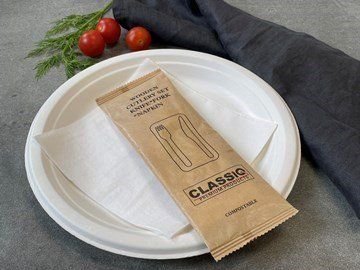 Biodegradable cutlery pack w napkin